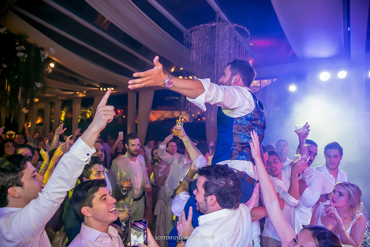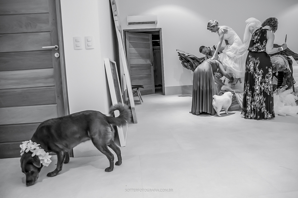 Fomos imediatamente para o local da cerimônia para ver como estava, e chegando lá ficamos extremamente abalados com o que vimos, o vento sul (mais temido) destruiu boa parte da festa, muitas coisas se quebraram, outras molharam, muitas pessoas começaram a ajudar inclusive os convidados, não teria mais opções, o casamento poderia ser adiado.