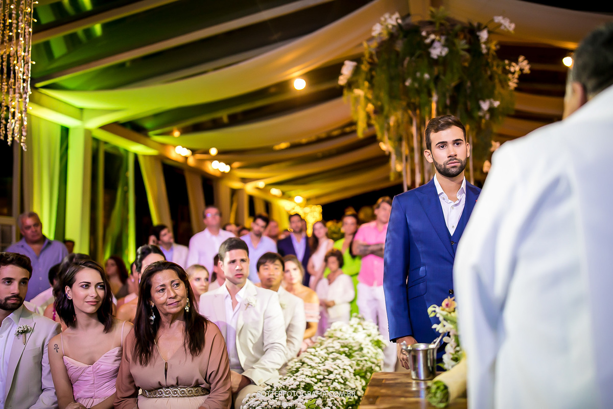A cerimônia estava marcada para as 16:00hs, chegamos em Arraial por volta do meio dia, o dia estava lindo, muito sol. Quando estávamos almoçando o tempo começou a ficar estranho, muito vento, tudo escureceu rapidamente e ai começou a chover sem parar.